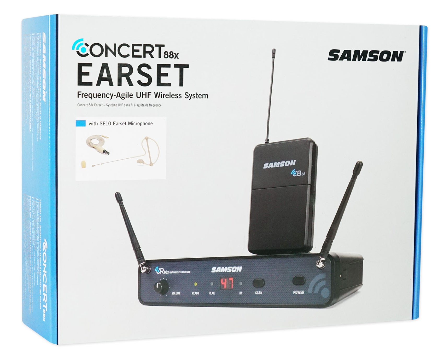 Taking the complexity out of going wireless, Samson Concert 88x combines professional-grade audio clarity, reliable operation in the UHF band with extremely easy setup. The Concert 88x Earset system is an excellent choice for singers, worship leaders, educators and presenters making the leap to the freedom of wireless.