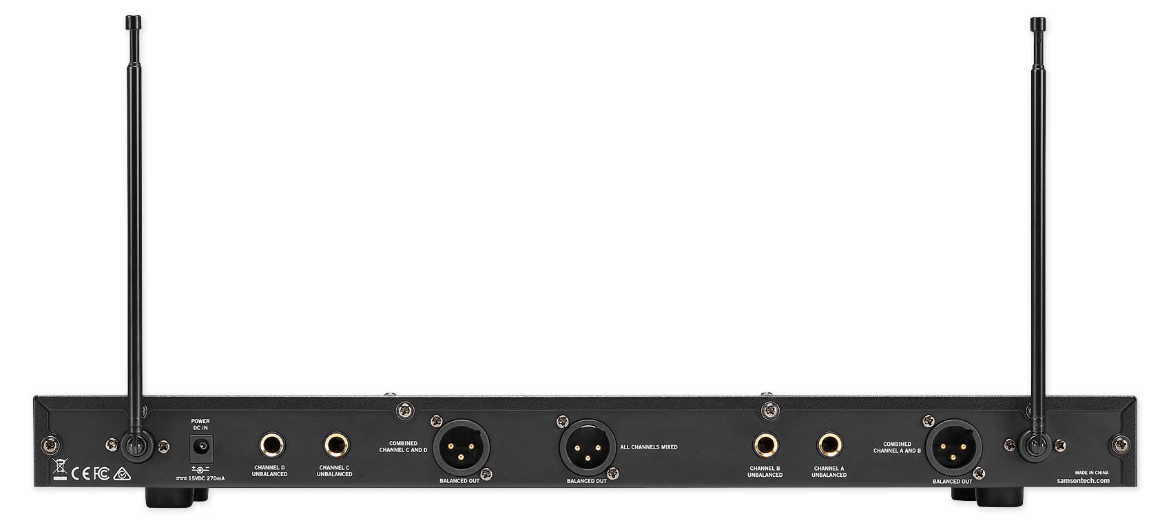 - Quad-channel VHF (173MHz–198MHz) wireless system