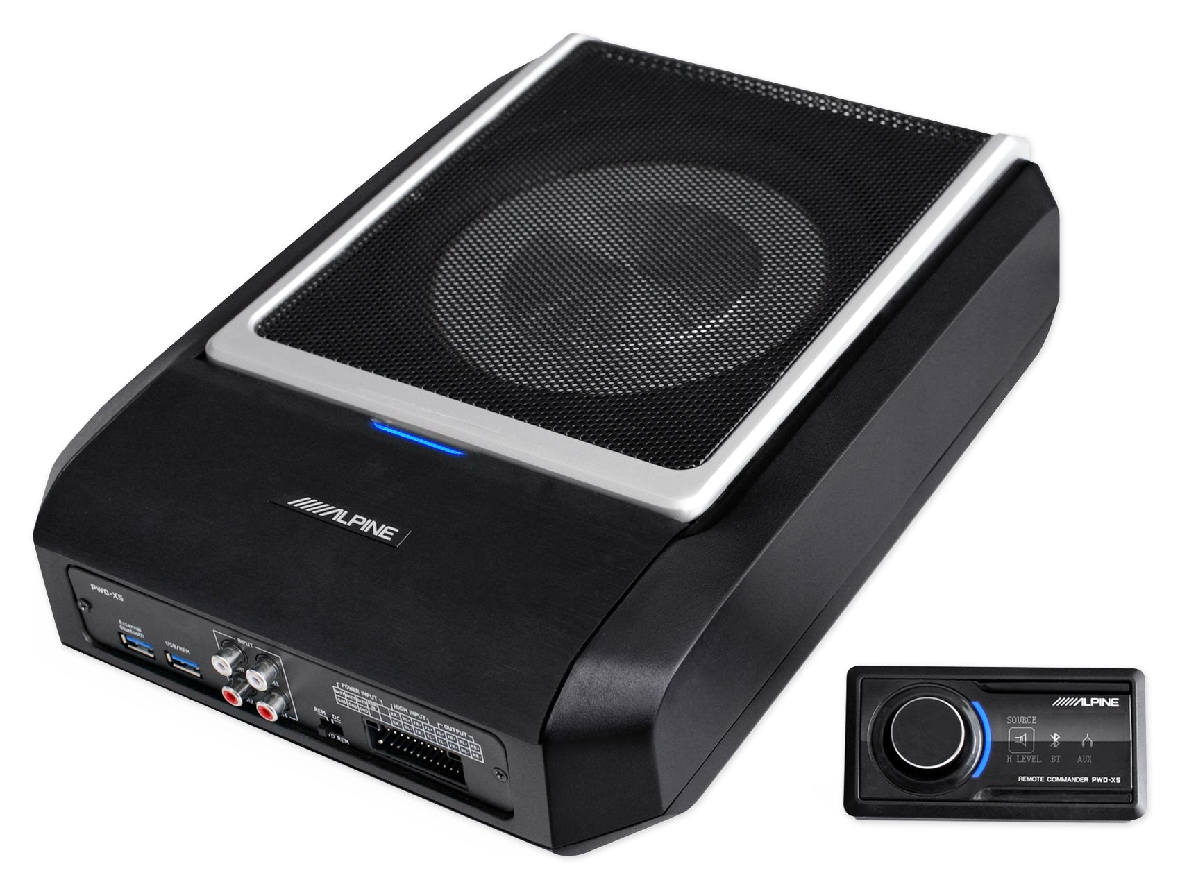 - ALPINE PWD-X5 Shallow Slim Under-Seat Powered Subwoofer w/Built-In 4-Channel Amp