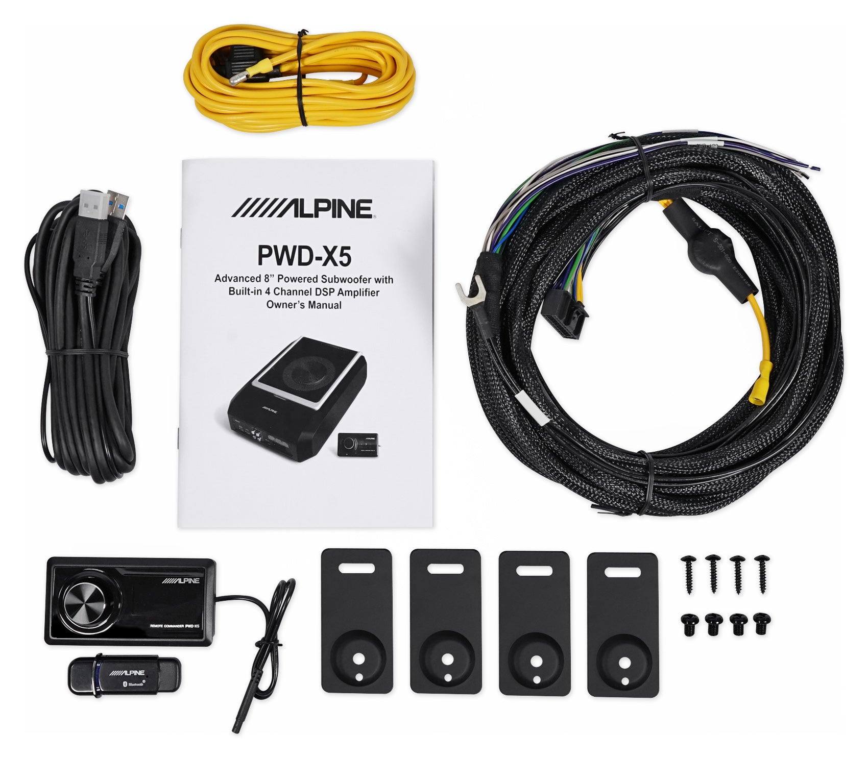 - (1) Alpine PWD-X5 Shallow Slim Under-Seat Powered Subwoofer w/Built-In 4-Channel Amp