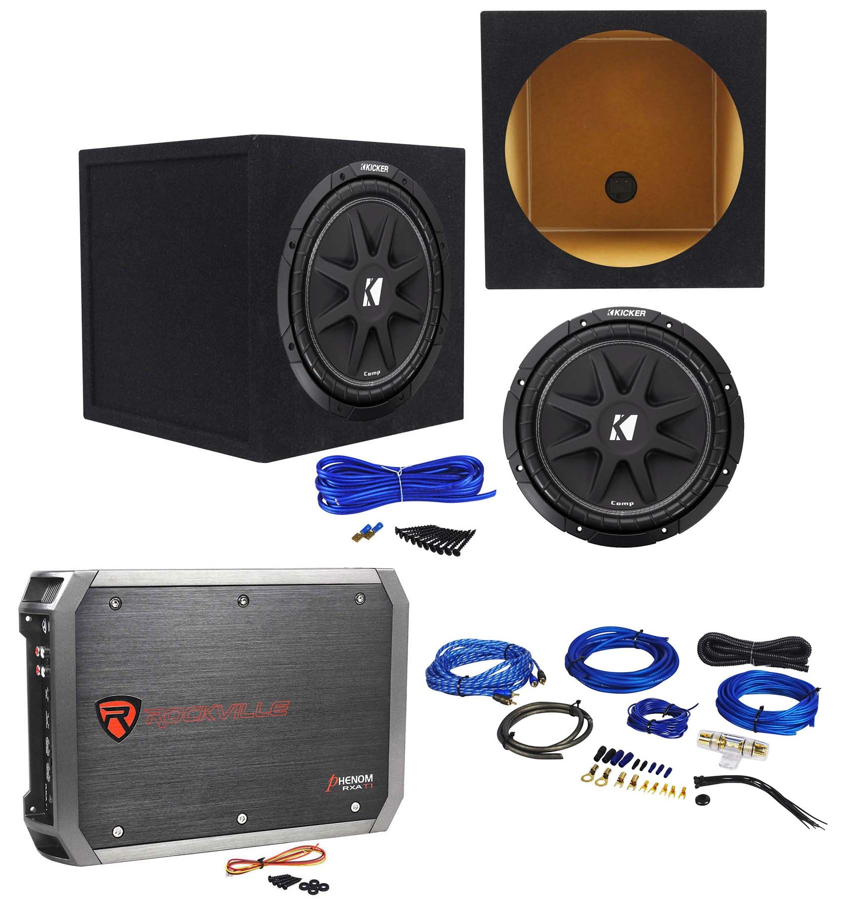 KICKER 43C124 Comp 12" 300 Watt Car Subwoofer+Amplifier+Amp Kit+Sealed Sub Box