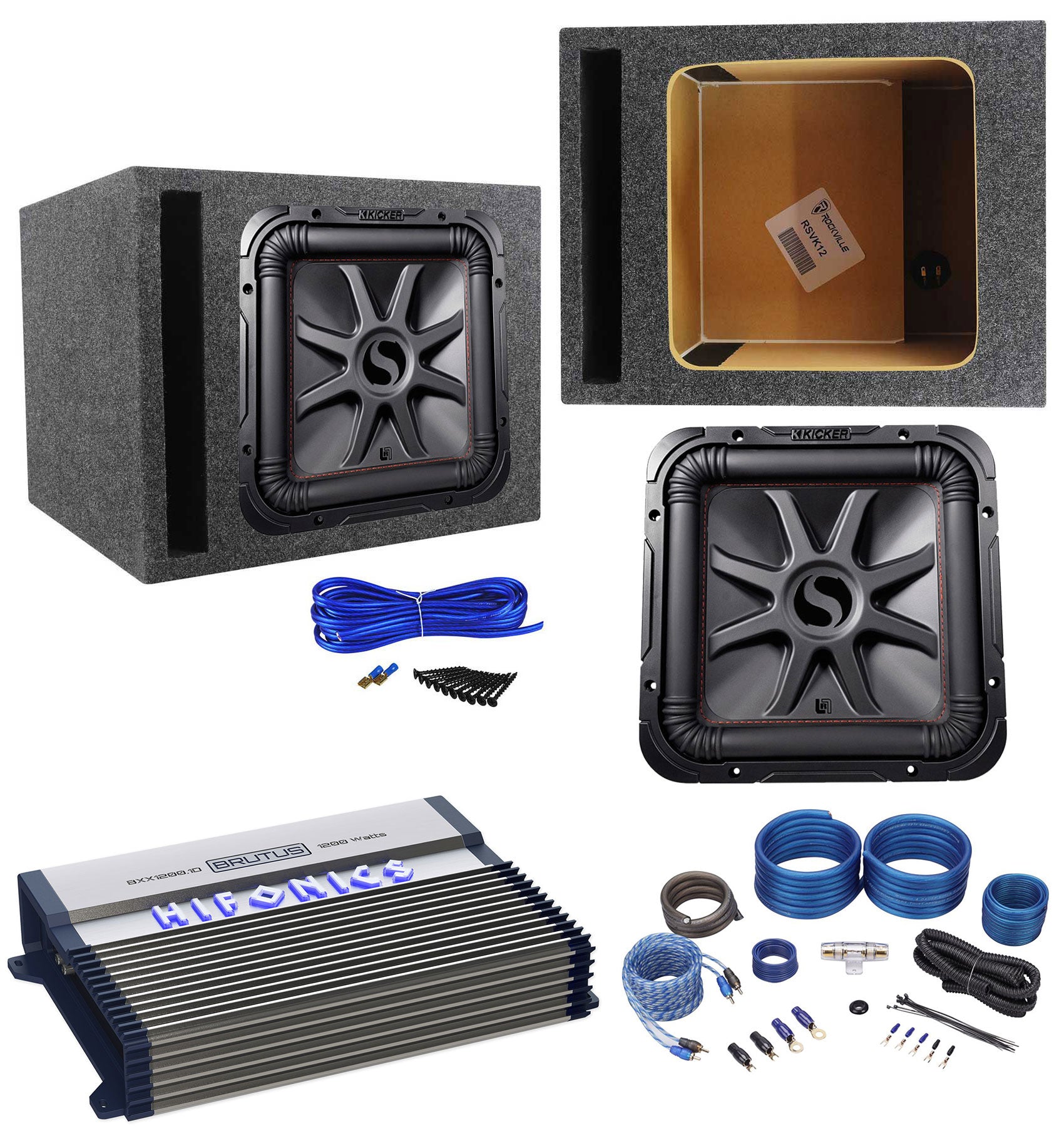 KICKER 45L7R122 12" 1200w L7R Solo-Baric Subwoofer+Vented Box+Hifonics Amplifier