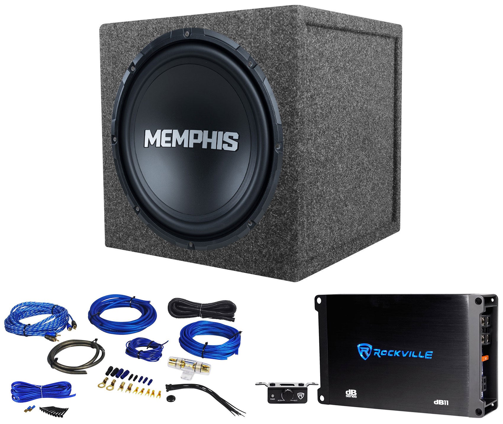 Memphis Audio SRX1244V 12" 300 Watt Car Subwoofer+Sealed Box+Amplifier+Amp Kit
