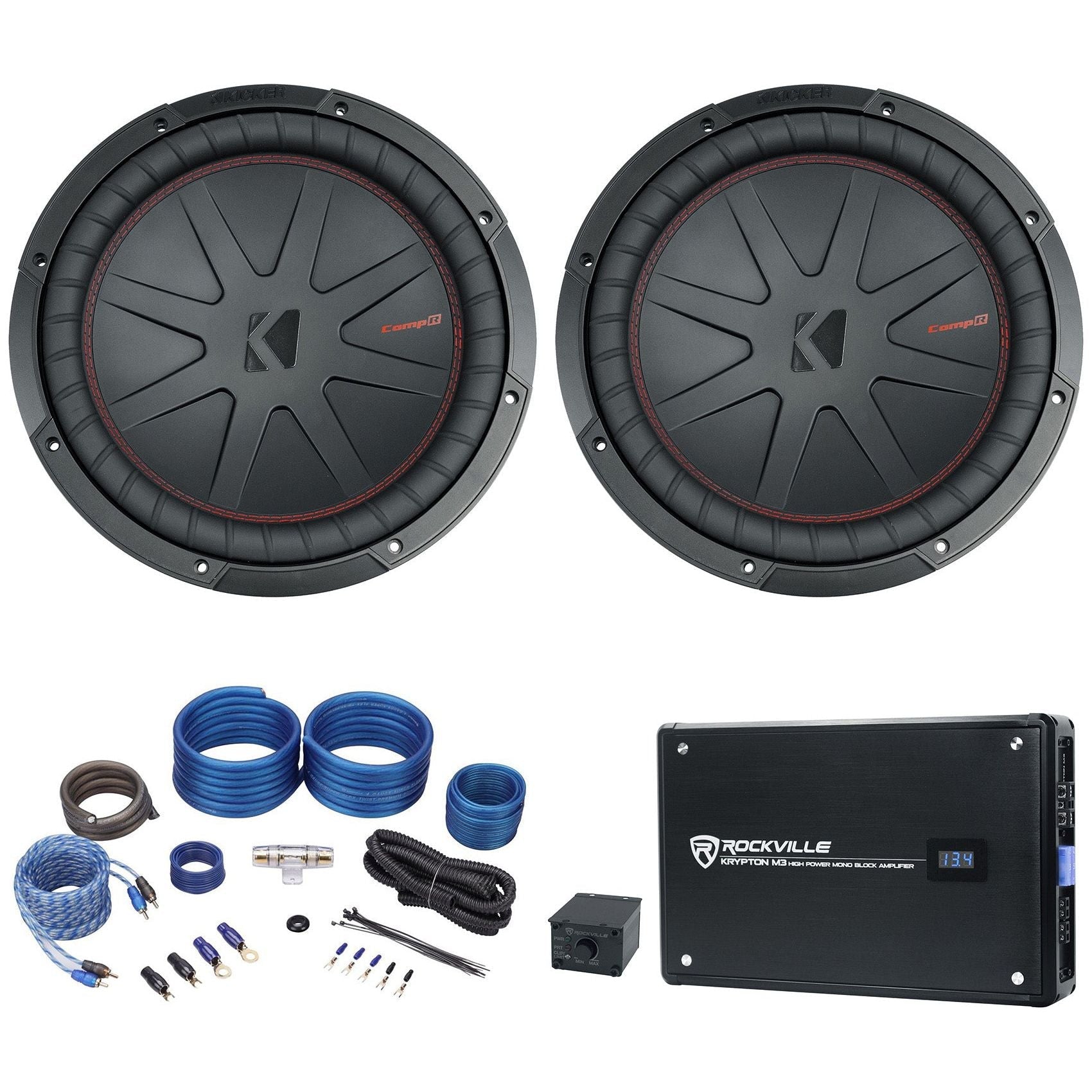 (2) Kicker 48CWR124 COMPR12 12" 2000 Watt Car Subwoofers+Mono Amplifier+Amp Kit