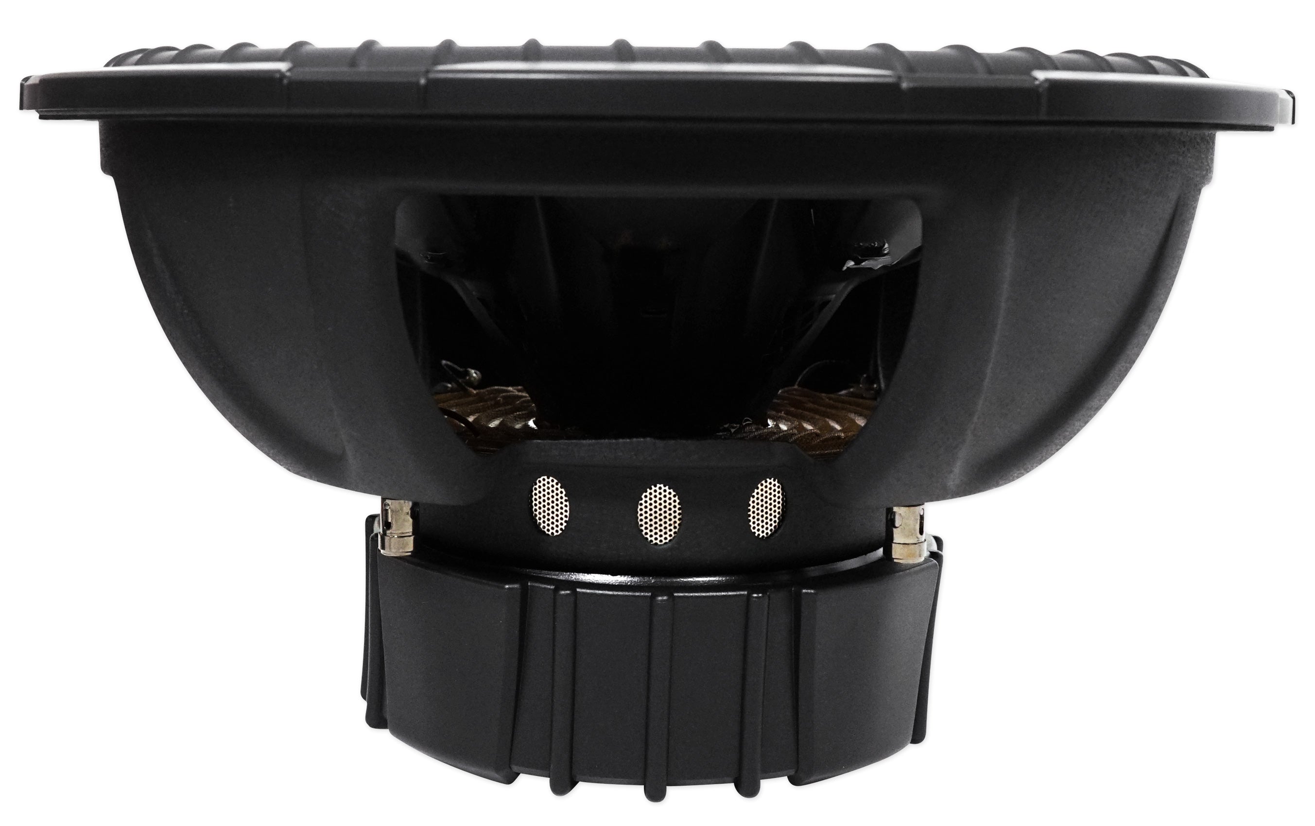 A stamped steel basket holds vibration at bay while a pair of high-temp voice coils move an injection molded woofer hundreds of times a second, giving you strong, distortion-free bass.