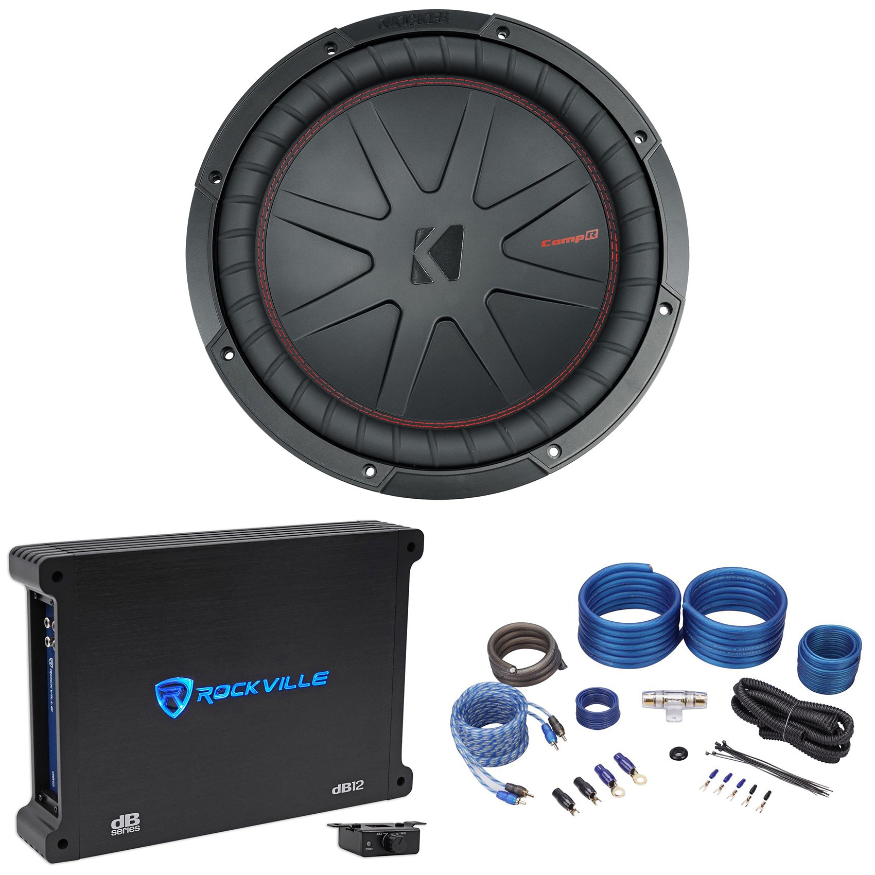 Kicker 48CWR124 COMPR12 1000 Watt 12" Car Subwoofer Sub+Mono Amplifier+Amp Kit