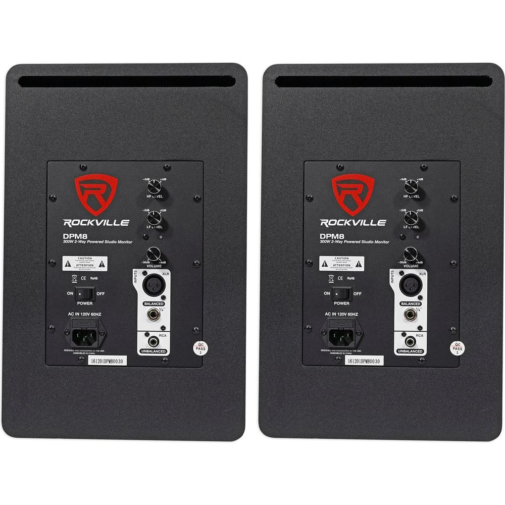 - (2) Rockville DPM8C 8" 2-Way 600W Wood Active/Powered Studio Monitor Speakers