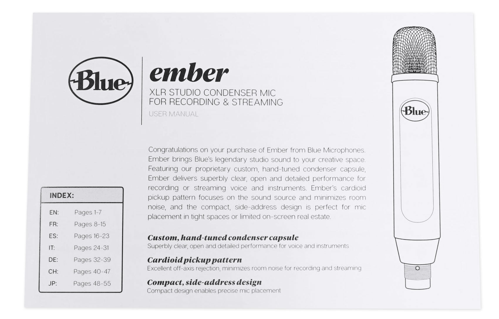 Ember brings Blue’s legendary studio sound in a compact formfactor to your creative space. Featuring our proprietary hand-tuned custom condenser capsule, Ember delivers superbly clear, open and detailed response for both voice and instruments.