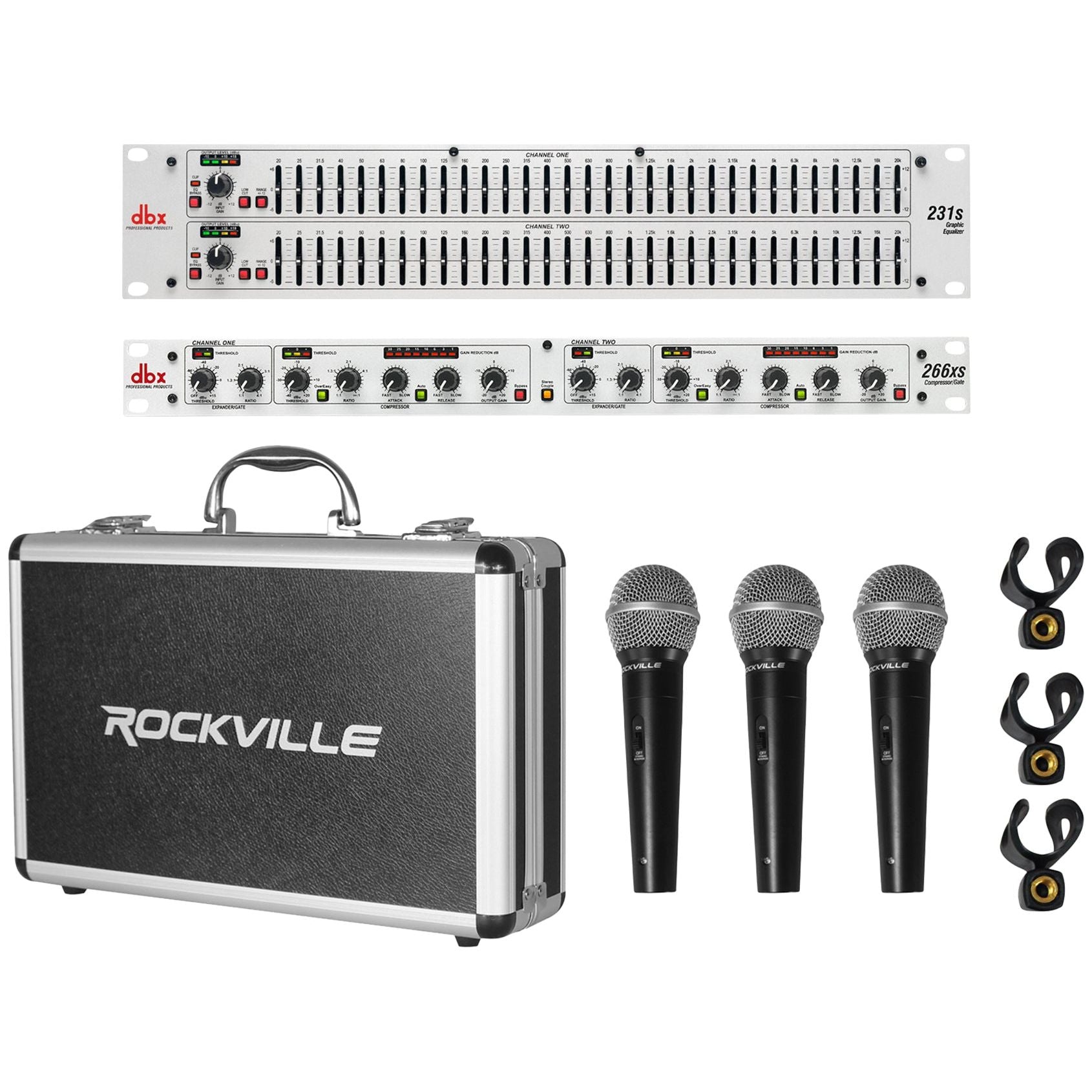 DBX 231S Dual 31 Band Graphic Equalizer Audio Rack Mount EQ+Compressor+(3) Mics