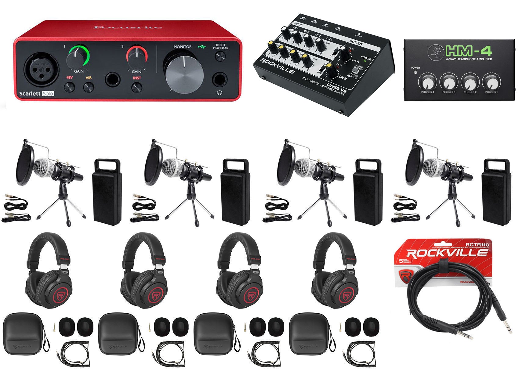 Focusrite 4-Person Podcast Podcasting Recording Kit w/Mics+Stands+Headphones