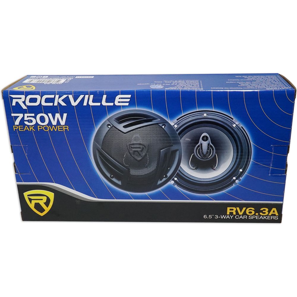 • (1) Pair of Rockville RV6.3A 6.5" 3-Way Car Speakers 750 Watts/140 Watts RMS CEA Rated