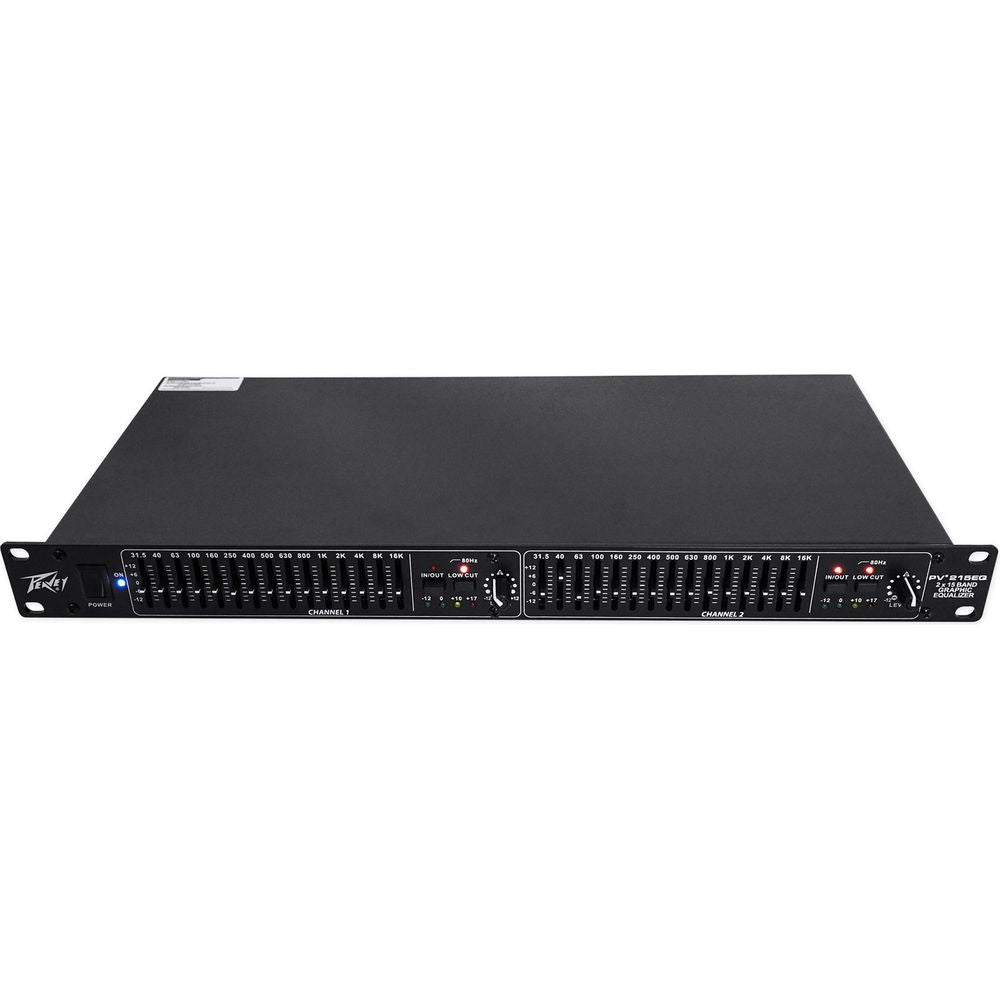 The PV® 215EQ dual 15 band 1/3 octave graphic EQ is a single rack space unit that's a simple and affordable solution to equalization. Select between 6 dB or 12dB cut or boost over frequencies ranging from 25 Hz to 16 kHz. Low cut filter switch with status LED helps remove rumble from open mics.