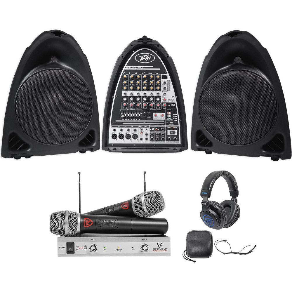 Peavey Pvi Portable DJ PA System 2) Speakers+Mixer+Dual Wireless Mics+Headphones
