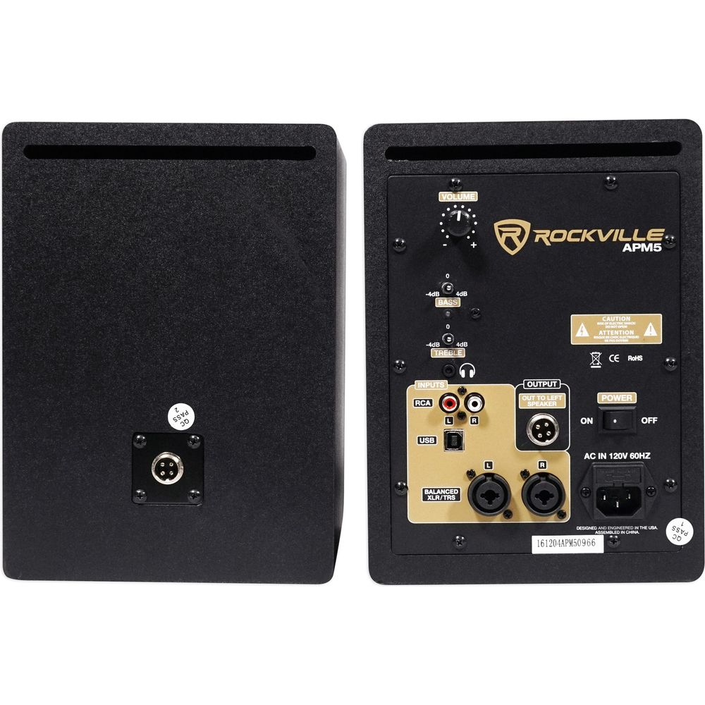 - Rockville APM5B 5.25" 2-Way 250 Watt Powered USB Studio Monitor Speakers in Black (Pair)