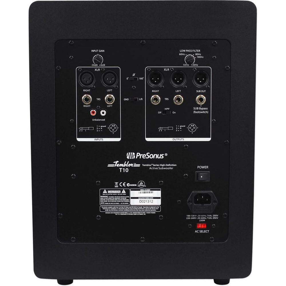 - Presonus Temblor (T10) 250 Watt / 175 Watt RMS Active Studio Subwoofer