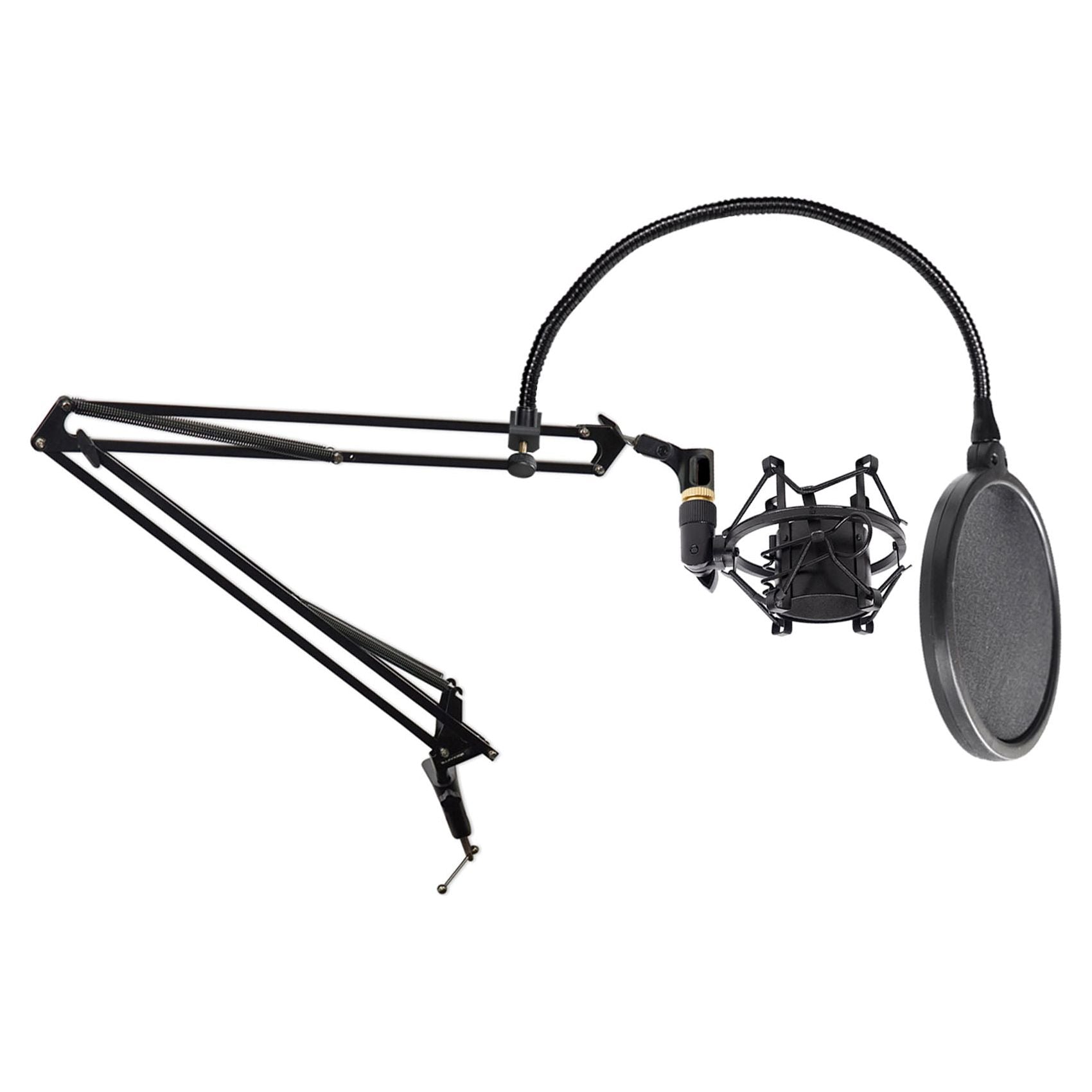 Rockville Microphone Boom Arm Studio Podcast Mic Stand+Pop Filter+Shockmount
