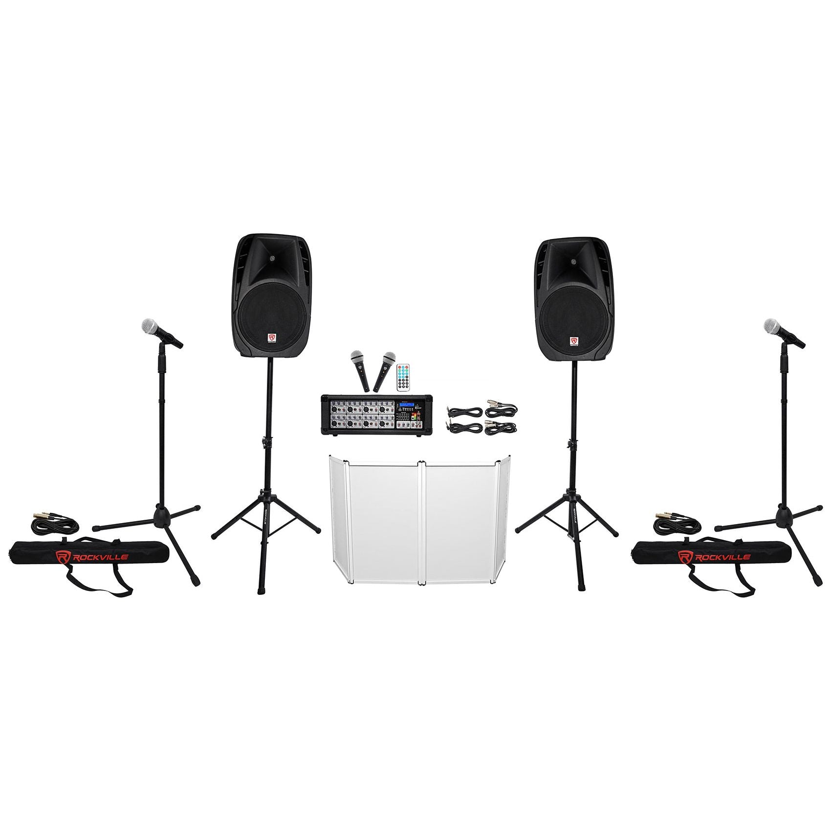 Rockville RPG2X15 PA System Mixer/Amp+15" Speakers+Stands+Mics+Bluetooth+Facade