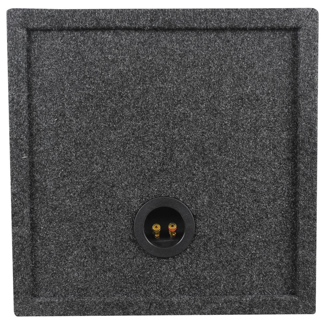 The RS12 single sealed speaker box is made in the USA with Grade “A" ¾" MDF wood. This enclosure is made with precision cutting machinery by industry experts that have been making these enclosures in the USA for over 20 years. All Rockville enclosures come with a customized enhanced glue that is unmatched by any other manufacturer. That means that the carpet will stay in place and not rip or tear. The ¾" USA MDF is much stronger then any type of import wood. This will keep your box performing at an optimal level by not flexing and distorting your woofers. Your woofers will thank you! EVERY Rockville enclosure is not only glued at all joints but stapled as well. If that wasn’t enough we add a layer of silicon to every seam! This makes your Rockville enclosure rock even more!