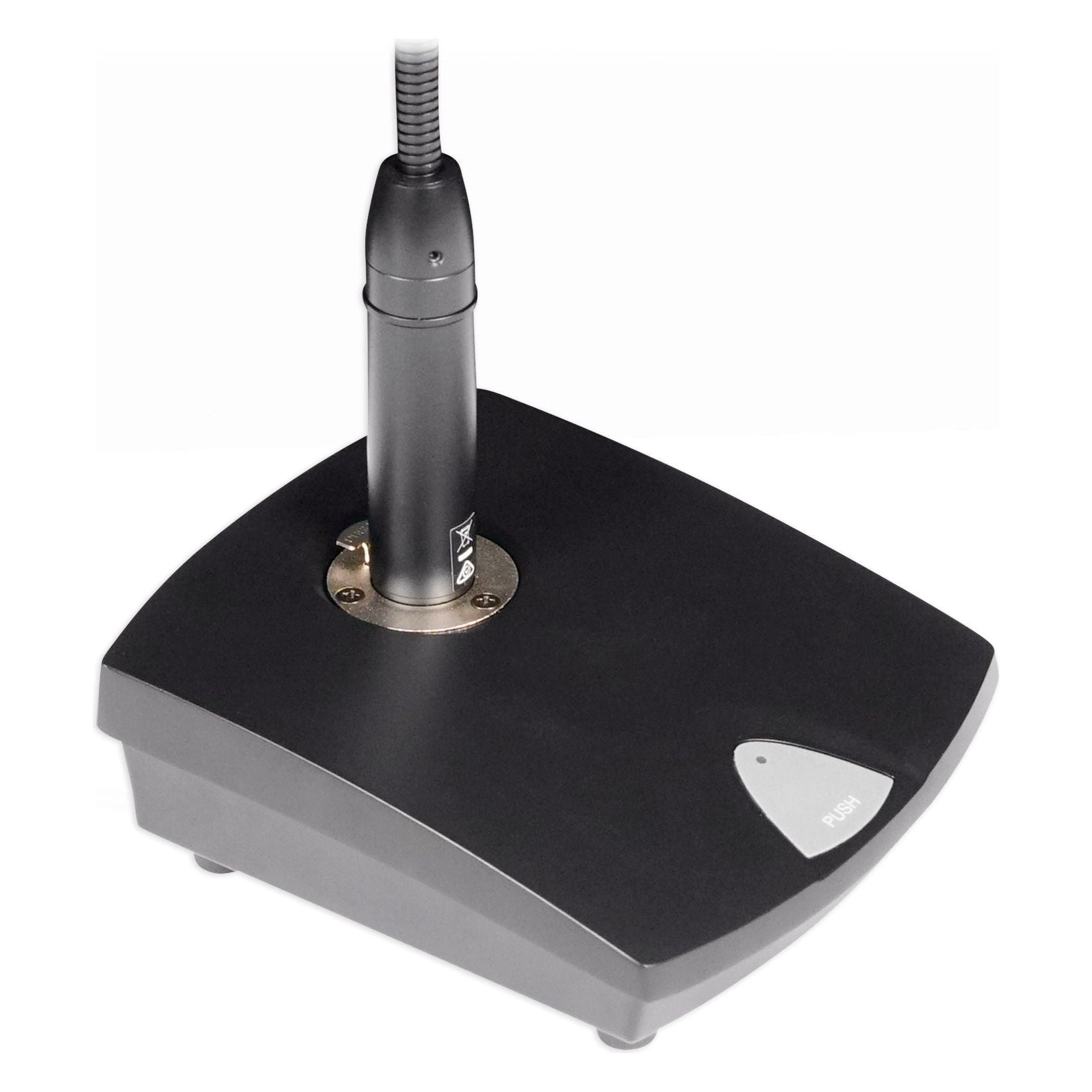- Weighted microphone base with female XLR connector