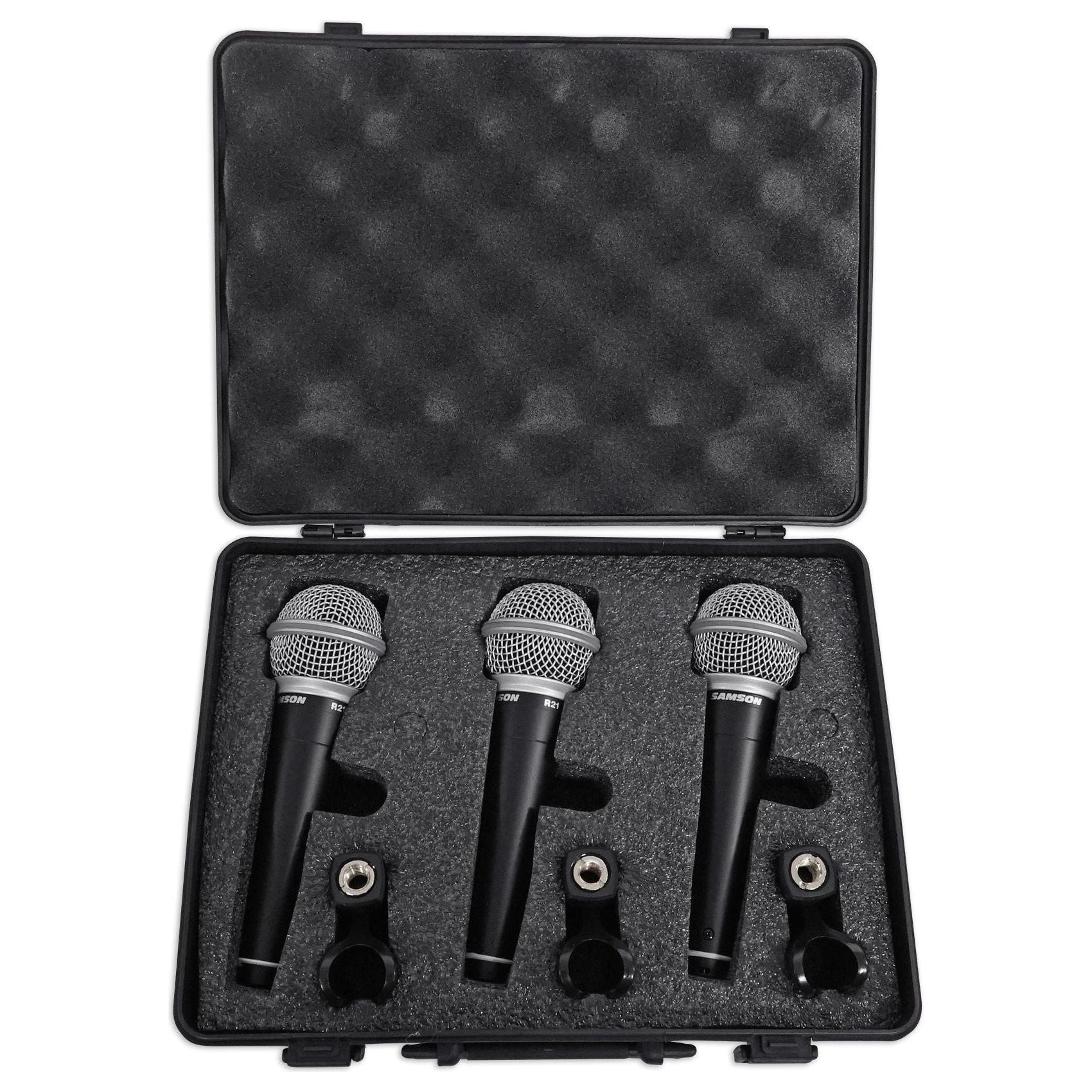 - Samson R21 3-Pack Dynamic Vocal Cardioid Handheld Microphones+Mic Clips+Case