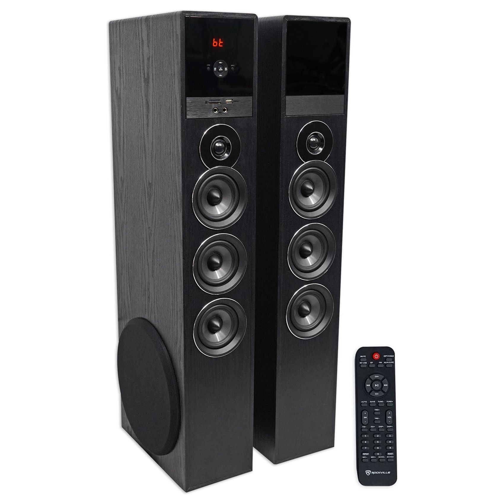 • Rockville TM150B Complete Powered Home Theater Tower Speaker System With Dual 10" Subs